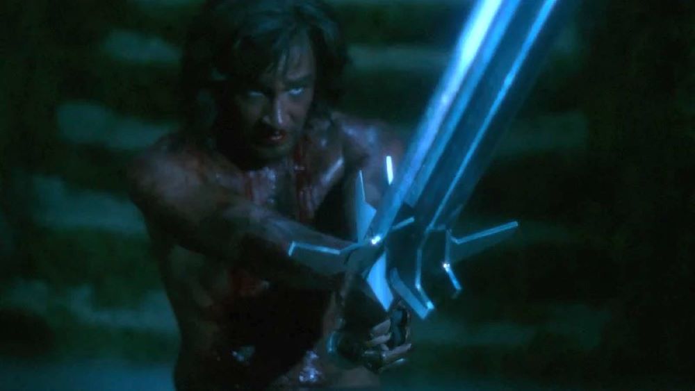 One thing this flick does have which made it a cult classic for fans of the fantasy genre is the sword in the title. The main character of Talon wielded a three-bladed sword. Let me repeat that: A THREE-BLADED SWORD. The sword wasn’t just sporting three blade but the wielder has the ability to shoot two of the blades at someone. Definitely puts to shame those sissy Spetnaz ballistic knives. Arnold may have had an Atlantean-forged blade in Conan the Barbarian, but Lee Horsley definitely outsworded him in his flick.