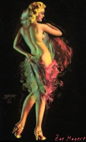Zoe Mozert was one of the few female glamour/pin-up artists and she was one of the most famous. A graduate of the Philadelphia School of Industrial Art, Mozert began her career as an illustrator in 1932. She often used herself as her model and her illustrations were known for their realistic depiction of women. Along with her pin-up work, she illustrated hundreds of covers for magazines like Romantic Movie Stories and True Confessions.