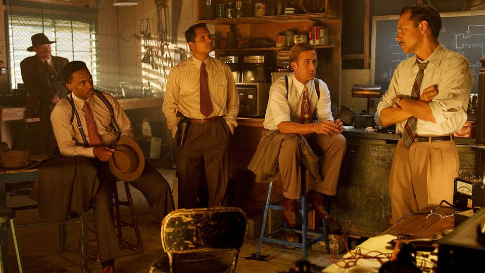(L-r) JOSH BROLIN as Sgt. John O’Mara, ROBERT PATRICK as Officer Max Kennard, ANTHONY MACKIE as Officer Coleman Harris, MICHAEL PEÑA as Officer Navidad Ramirez, RYAN GOSLING as Sgt. Jerry Wooters and GIOVANNI RIBISI as Officer Conwell Keeler in Warner Bros. Pictures’ and Village Roadshow Pictures’ drama “GANGSTER SQUAD,” a Warner Bros. Pictures release.