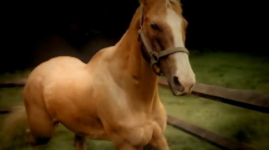 That is followed by the horse jumping the barb-wire fence. While the horse makes it over the fence, it still catches its legs on it.