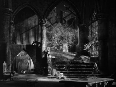 I’ll give Hillyer credit for some atmospheric scenes scattered throughout the movie. The opening scene at Carfax Abbey, cobwebbed as ever, picks up where DRACULA left off, with Edward Van Sloan’s Van Helsing (inexplicably renamed Von Helsing here) caught by constables shortly after staking the undead Count. The Countess burning the body of her vampiric father, hoping to free herself of her curse, is spooky, as is the return…