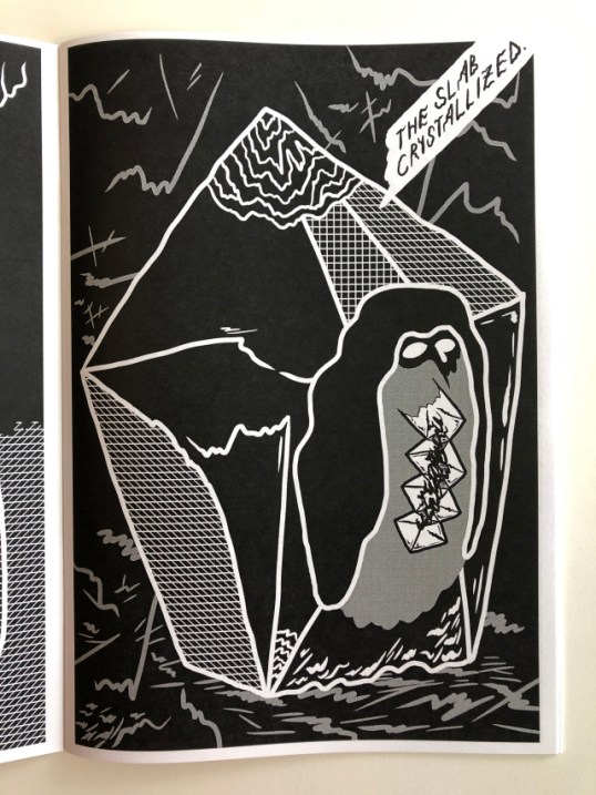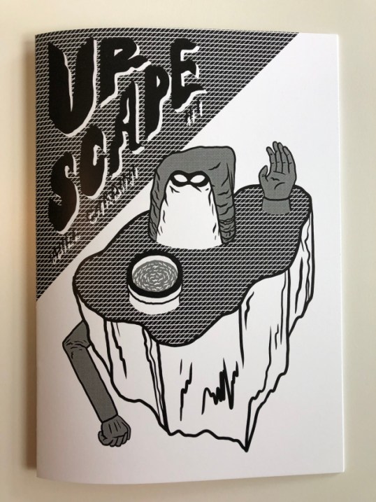 If there was anything tethering Will Cardini to the dull, consensus version of “reality” — and that’s a mighty big “if” — it’s gone now, as his imagination completely and utterly flies the coop with the release of his new self-published B&W full-sized comic (he calls it a “mini,” but it’s not) Urscape #1. The cosmic clashes of absolutes that were his stock in trade in earlier pubs such as Tales From The Hyperverse and Sphere Fear are here not so much jettisoned as naturally transitioned into those selfsame absolutes — in this case represented by his recurring protagonist Miizzzard — just being absolute and doing absolute sorts of things.