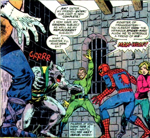 The main reason that I remember the Monster Maker is because, when I was seven years old, I found a copy of Marvel Team-Up #36 at a garage sale and I got excited because The Frankenstein Monster was on the cover. My mom bought it for me. When I got home, I read the comic and I was stunned to discover that it ended with a “to be continued” right after Spider-Man and the Monster discovered the Man-Wolf waiting for them in the Baron’s laboratory. (This was when I was still too young to understand that all comic books ended with a “to be continued” because that was the easiest way to get kids like me to spend my allowance on them.)