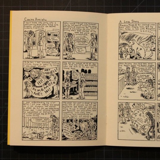 That being said, as the asterisk on the cover of My Dog Ivy : A July Diary, her latest single-issue “floppy” from Uncivilized Books, makes clear, the titular golden retriever isn’t hers, but belongs to the Twin Cities couple she’s house-sitting for — whose identities should be easy enough to suss out with my having to say so, I would think. Not that Ivy is the only pet she’s charged to take care of, given that two cats are also “on the scene,” and not that watching after all these animals is the only thing that she has on her plate, given that there’s a garden to be tended, as well.