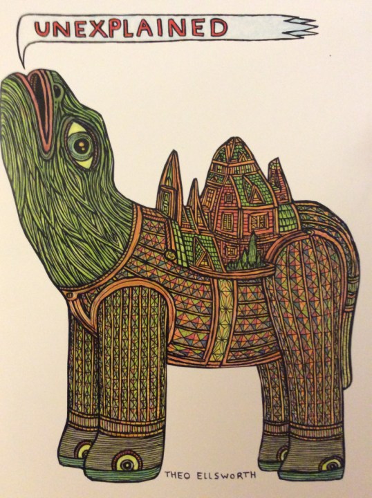 And art is what his latest ‘zine, Unexplained — self-published, as ever, under Ellsworth’s own Thought Cloud Factory label, and presented in a generous…