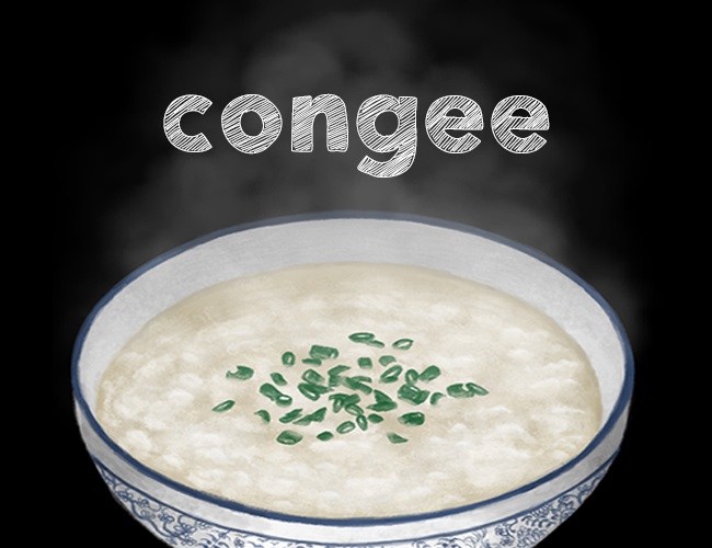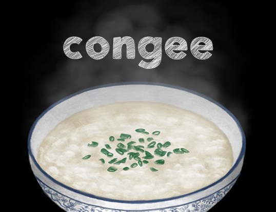 (From the game: Congee /ˈkɒndʒiː noun  (in Chinese cooking) broth or porridge made from rice. Meat, fish, and flavourings are added while preparing the congee, and it is most often served as a meal on its own, especially for those who are feeling unwell.)