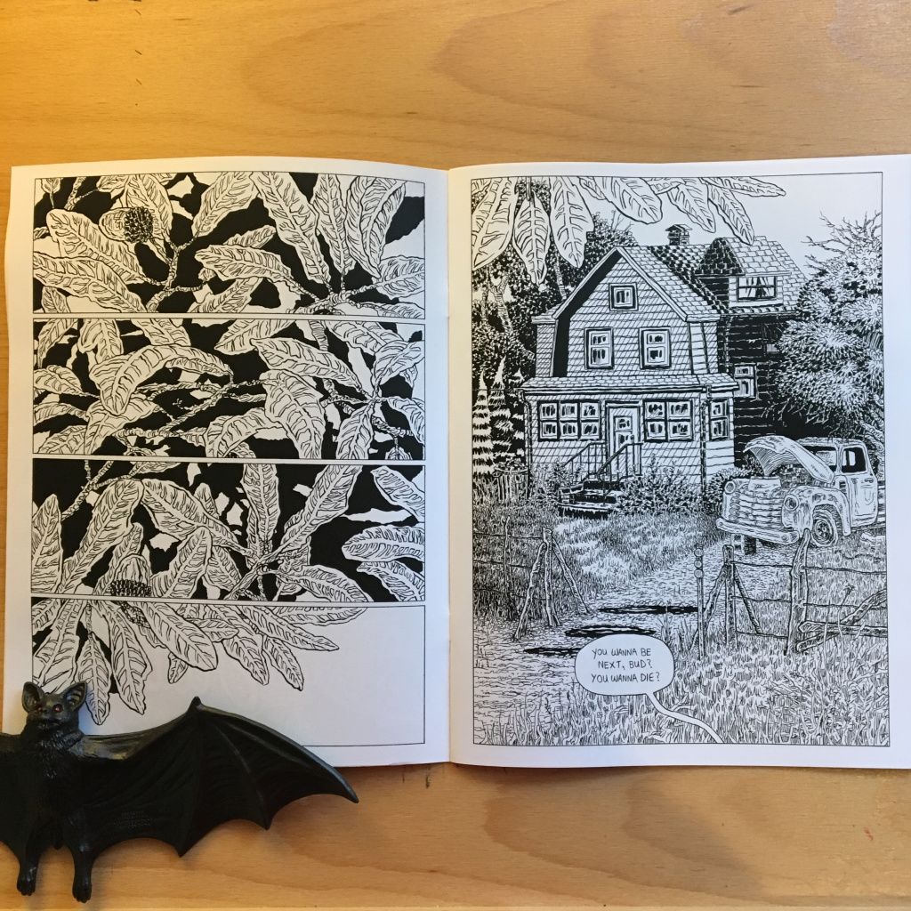 Spoiler alert : he’s actually a mutant quasi-anthropomorphic fuzzy mosquito (or something), so his lust for the red stuff is just as natural as breathing is to you or me. But maybe we’re putting the cart before the horse by pondering the (somewhat) philosophical questions at the heart of writer Thomas Stemrich and artist Patrick Keck’s new full-sized (and, for the record, self-published) comic ‘zine Crusher Loves Bleeder Bleeder Loves Crusher #1 prior to considering the work on its technical merits? I guess we are.