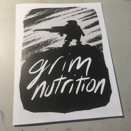 His latest self-published number (that I’m aware of, at any rate), a punchy eight-pager titled Grim Nutrition, is about as perfect a distillation of what makes his art, if not unique per se, at the very least special, and in a pinch…