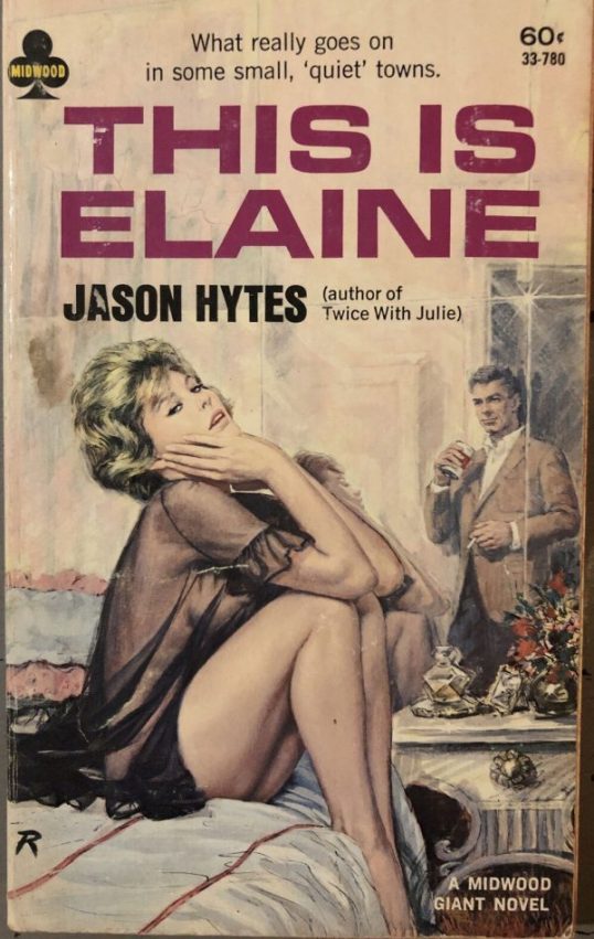 This book and cover are from 1966.  According to the cover, it was written by the author of Twice with Julie.  Was Julie a friend of Elaine’s? Maybe that man smoking the cigarette knows Julie too.  What I like about this cover is the use of the mirror.  At first, it appears that Elaine is looking at the reader, inviting them to read the book.  It’s only when you look closely at the cover that you realize she’s sitting in front of a mirror and that, instead of standing behind her and watching her from a distance, the man is actually standing directly in front of her.