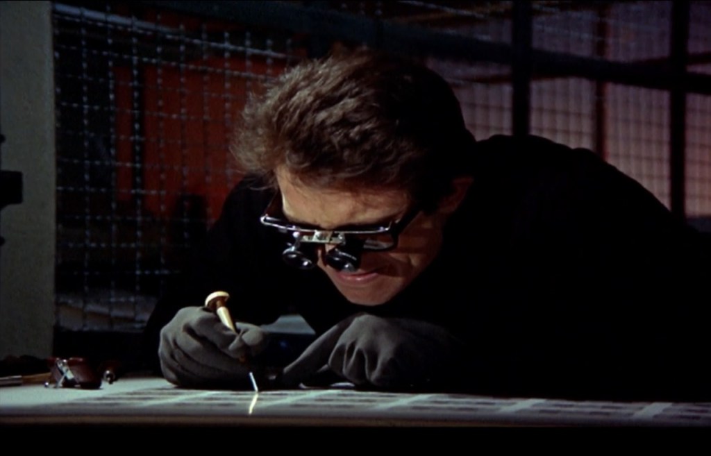 He breaks into a factory that makes playing cards for the different casinos/clubs in the area. He marks the originals that will be used to print the cards. Then he sits back and waits for the marked cards to be printed and delivered securely, end-to-end, to the casinos/clubs. He can win as much as he wants because all the cards are pre-marked. Is he winning too much? No worries, cause even if the casino opens up a fresh deck, they’re marked too. Of course he eventually runs into a problem when the film realizes it doesn’t have a story beyond this neat idea.