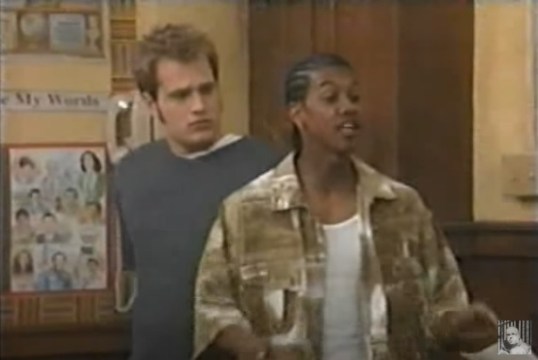 Though Chris and Jamal try to keep the show light with a really bad Regis Philbin impersonation, their producer tells them that listeners don’t want nice. They want mean. So, Chris and Jamal insult all of their friends on the show. Apparently, the listeners love it and it looks like Chris and Jamal might get their own show! I guess pre-911 New Yorkers loved to turn on the radio and hear insulting jokes about obscure high school students. All of Chris and Jamal’s friends get angry and refuse to have anything to do with them so Ms. Noble decides to get involved.