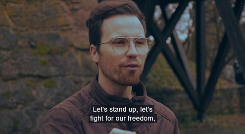 The film follows a group of Christians as they try to fight back against the one world government. It starts with them spray painting Jesus fish onto walls and sidewalks. (One of the sidewalks that they use as a canvas is covered by leaves so you can’t help but feel that one strong gust wind is going to totally destroy all of their work.) Eventually, a hacker shows up at their apartment and helps them get their message out. Christians start to meet in secret and our main character (played by one of the film’s two directors, Joshua Wesley) gives a variation of Mel Gibson’s Braveheart speech.