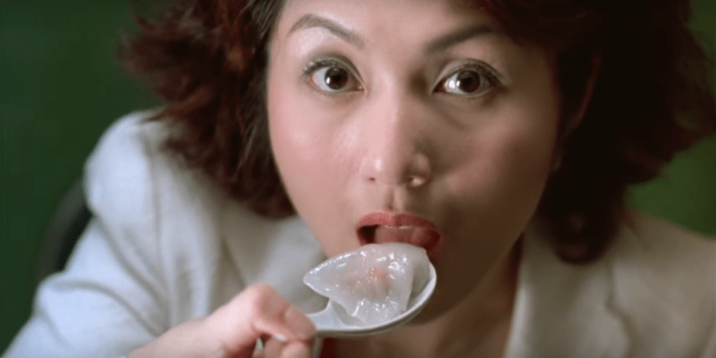 DUMPLINGS (2004) centers on Mrs. Li (Miriam Yeung), a former actress now in her forties, who’s struggling with getting older and no longer being attractive to her husband, Mr. Li (Tony Leung Ka-Fai). It seems he’s more interested in his beautiful young masseuse than he is in her, which leads Mrs. Li to seek out Aunt Mei (Bai Ling), an ex-gynecologist from mainland China who has a reputation in the underground for her expensive “miracle” dumplings that promise a fountain of youth. Initially appalled by Aunt Mei’s not-so-secret ingredients, once she starts looking better, Mrs. Li begins to not only accept the recipe, but she also starts to relish it. Soon she’s making passionate love to her husband and finding herself the envy of her friends again. But what is that fishy smell and why is she so itchy all of a sudden? And does it even matter if she feels young and beautiful again?!! Expanded into a feature length movie from a segment of the 2004 anthology film, THREE…EXTREMES (2004), DUMPLINGS ponders just how far we’re willing to go to defy the aging process.