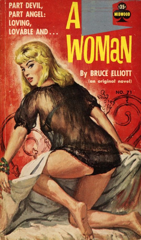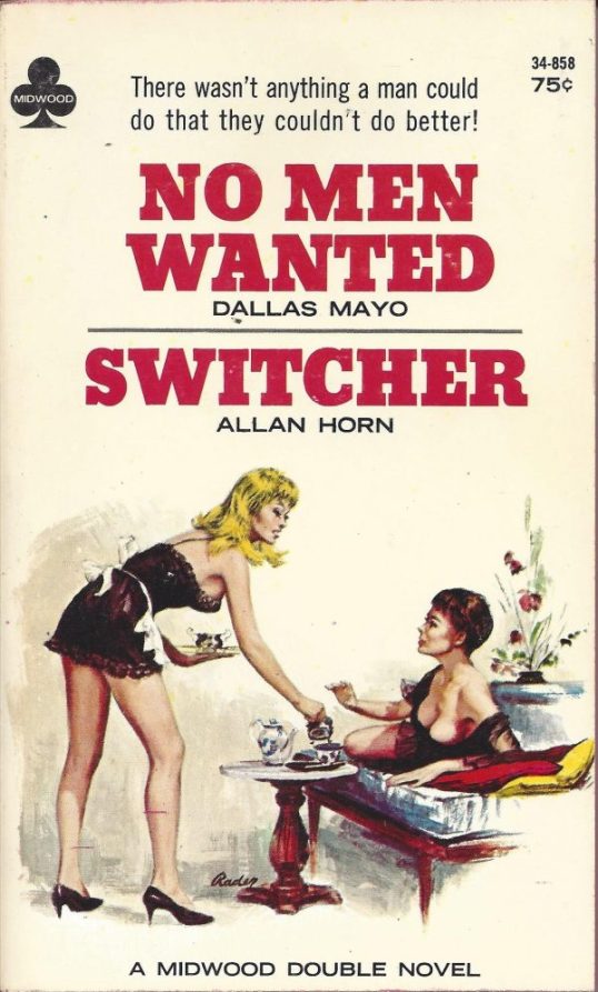 Midwood Books was a publishing house that was active from 1957 to 1968.  With a roster of pseudonymous authors, Midwood published “adult” novels that were aimed towards men.  Today. their paperbacks are best known for their often racy covers and they are highly prized by collectors as a result.