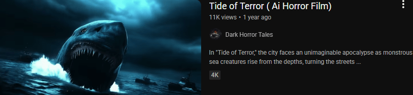 This AI short gave me a little jump. It did have some suspense; so, I won’t feed the creator to the sharks. Sorry Sharks.