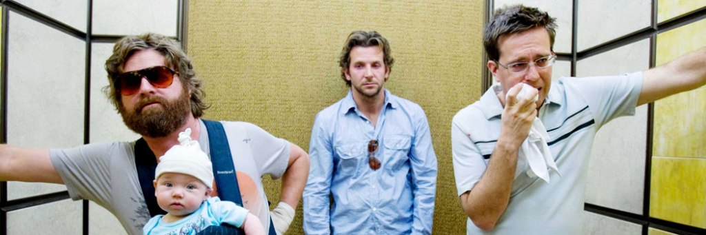 Of course, the comedy in THE HANGOVER would not work without the great direction from Todd Phillips, as well as the exceptional performances and chemistry between Bradley Cooper, Ed Helms, and Zach Galifianakis. Phillips moves things along at a perfect pace, allowing for tons of laughs, while propelling the story forward to its conclusion. He also seems to capture the chaos and “what happens in” feeling of an out-of-control night in Vegas. And when I watched the film, I was reminded of people in my own life who share certain traits with some of the characters, especially those played by Cooper and Helms. As such, the interactions between the characters seems natural and familiar to me, which makes it even funnier. Luckily, I can’t think of any friends like Galifianakis’ eccentric character, but that’s probably a good thing for my real life. In the context of the movie, however, he steals the film with his deadpan delivery.