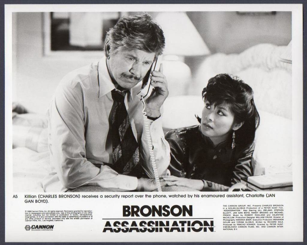 On a personal note, I must say that Jan Gan Boyd is one of the sweetest ladies I’ve ever met. My partner Eric Todd and I got the opportunity to interview her for an episode of the THIS WEEK IN CHARLES BRONSON podcast a couple of years ago. She told us some of the best stories about Charles Bronson and Jill Ireland, as well as what it was like to work with them on ASSASSINATION. She truly loved them in real life, and it was so fun sharing that time with her. As a matter of fact, over on our TWICB Facebook page, every January is now Jan-Gan-uary! I’ve attached a link to the podcast episode if you would like to hear more from Jan about her career and her work with Bronson, Michael Douglas, and Richard Attenborough.