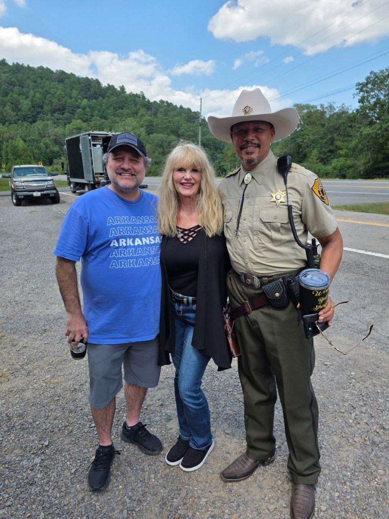 My wife and I will spend this weekend sipping coffee off the back deck, listening to the sounds of the river rolling by, and then watching movies when the sun goes down. I’ll go see my brother this morning, who owns the local convenience store in the area, and I’ll work his cash register as he makes the best fried bologna sandwiches in central Arkansas. My brother bought the store five years ago, continuing a family tradition that started in 1940 when our great grandparents bought the store. It’s been in our family ever since. One of the coolest experiences in my life took place at the store a few months ago. The store has the perfect, old-timey, backwoods country store look, something even Hollywood noticed. In early August, the store was used as a filming location for a movie with major Hollywood talent. For a guy who’s been obsessed with movies since we got our first VCR in the 80’s, I asked my brother if my wife and I could come over and watch them film. I spent the day watching them film, visiting with a producer, visiting with the director, even taking a picture or two with the actors filming that day. It was truly one of the most awe-inspiring days of my life. My wife and I were able to get the picture below on that day. I can’t lie, the beauty of my wife is probably what allowed this to happen!