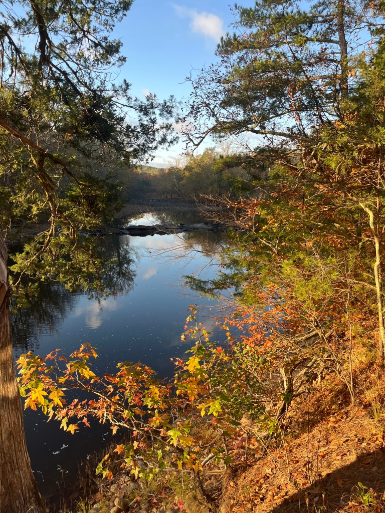 My dad grew up in the Ouachita Mountains of central Arkansas. Some folks would surely call them hills, and they’d probably be right, because I come from a family of hillbillies. And there’s no place I like to go back to more often than those hills in Perry County, Arkansas. It’s probably been 35 years ago now that dad found a beautiful patch of land in the Ouachita National Forest that runs along the South Fourche River, just a few miles from where he spent his summers with his Grandpa and Grandma Crain, mostly working their farm, but also fishing and hunting anytime he could. This started a journey of patience when dad went to the county courthouse, found out who owned the property (an older lady who lived out of state), and wrote his first letter to see if she was interested in selling. She responded to that first letter and said that she was saving the property for her children to have as an inheritance. A few years later, dad wrote again. Still not interested, the lady kindly turned down dad’s offer and thanked him for his interest. Fast forward a few years later, about 8 years after dad’s first letter, and a man contacted my dad this time. It was the lady’s son, who had found my dad’s letters as he was going through his mother’s house after she had passed away. He wanted to sell, and dad made him an offer that he couldn’t refuse. Now owning the land of his dreams, dad and mom proceeded to build a cabin. When I say they built the cabin, I don’t mean that they hired someone else to build the cabin, I mean that they built the cabin from the ground up. For the longest time, the only power they had was the generator that he brought with him to the location. Now fast forward 25 years later, and it’s the place we have spent all of our holidays together for the last couple of decades. It’s truly my happy place, the place I go when I need to disconnect from the stresses of life and reconnect with my wife, my family, and nature itself. I took this picture a few feet off of the back deck a few moments ago.