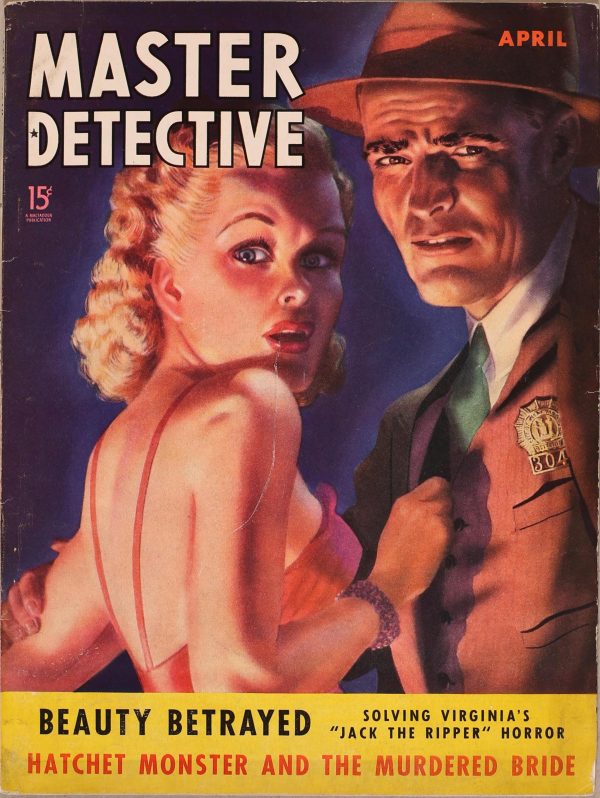 Then, 1931, the name of the magazine was changed again, this time to just Real Detective. The magazine’s format was now exclusively true crime and salacious scandal. The new format proved popular enough that Real Detective ran until 1985. Below are a few covers from the early days of Real Detective. (Around 1954, Real Detective went from hiring illustrators to draw their covers to hiring photographers to take pictures of distressed-looking models.) Where known, the artist has been credited.