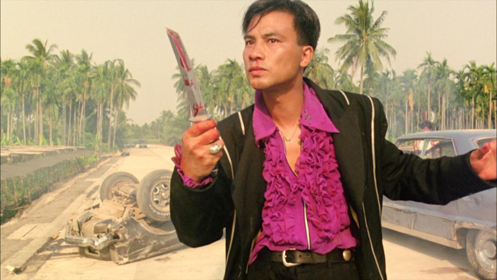 In FULL CONTACT, Chow plays Jeff, a bouncer at a bar in Thailand, where his girlfriend Mona (Ann Bridgewater) performs nightly interpretive dance / stripper routines. When Jeff’s best friend Sam (Anthony Wong) gets in trouble with a local loan shark, Jeff rides his big motorcycle over and collects Sam, kicks the collective asses of the loan shark and his goons, and even finds the time to slice and dice some wrists with his butterfly knife. The problem is solved for the night, but Jeff, Sam, and their buddy Chung (Chris Li) know that they’re going to have to come up with some cash to satisfy Hung sooner or later. So, Jeff sends Mona back to Hong Kong, while they team up with Sam’s flamboyantly gay, psychopathic cousin Judge (Simon Yam), and his crew made up of Deano (Frankie Chan) and Virgin (Bonnie Fu), to steal a shipment of arms. Unfortunately for Jeff, Judge has made a deal with loan shark Hung to use them for the arms heist, but then kill them once it’s over. After they pull off the job, Judge shoots Chung in the face and tries to kill Jeff, but instead the two men find themselves in an exciting car chase that ends when they both crash outside of an innocent family’s personal residence. They then engage in an epic fight, with a severely injured Jeff escaping into the home as the homeowner’s are brutally gunned down. Judge forces a freaked out, whining, whimpering Sam at gunpoint to go in the house and shoot his friend Jeff, which he does. After Sam walks out of the house, Judge and Deano blow the place all to hell with Jeff managing to get out of the house in just the nick of time with the family’s dog. Shot full of holes and missing a couple of fingers, Jeff must heal and plot his revenge on the friend who betrayed him and stole his girl, as well as the gay psycho who wanted to make love to him before trying his best to kill him!