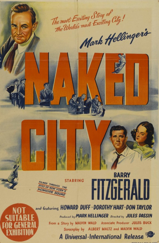 Producer Mark Hellinger, who brought you the film noir classics THE KILLERS and BRUTE FORCE , traveled to the mean streets of New York City to shoot NAKED CITY, along with director Jules Dassin and a solid cast led by Barry Fitzgerald. The movie, though fiction, is shot in docu-drama style, with Hellinger himself providing narration throughout. It was an attempt to do something boldly different with the genre, and it succeeds thanks to the talents in front and behind the cameras.