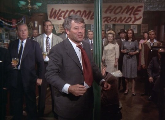 Twenty-five years later, the middle-aged Randy Lane is looking at his life and asking, “Is this as good as it gets?” He’s now a sales director at Pritzker Plastics but his boss (John Randolph) doesn’t appreciate him, his assistant (Bert Convy) is plotting to steal his job, and the only person who seems to care about him is his sympathetic secretary (Diane Baker). Randy’s wife died in 1952, while Randy was out of a sales call. Randy now lives alone. Even his neighborhood bar — Tim Riley’s Bar — has closed and been abandoned. With the bar schedule to be torn down, Randy wonder what happened to all of the promise and happiness of the past.
