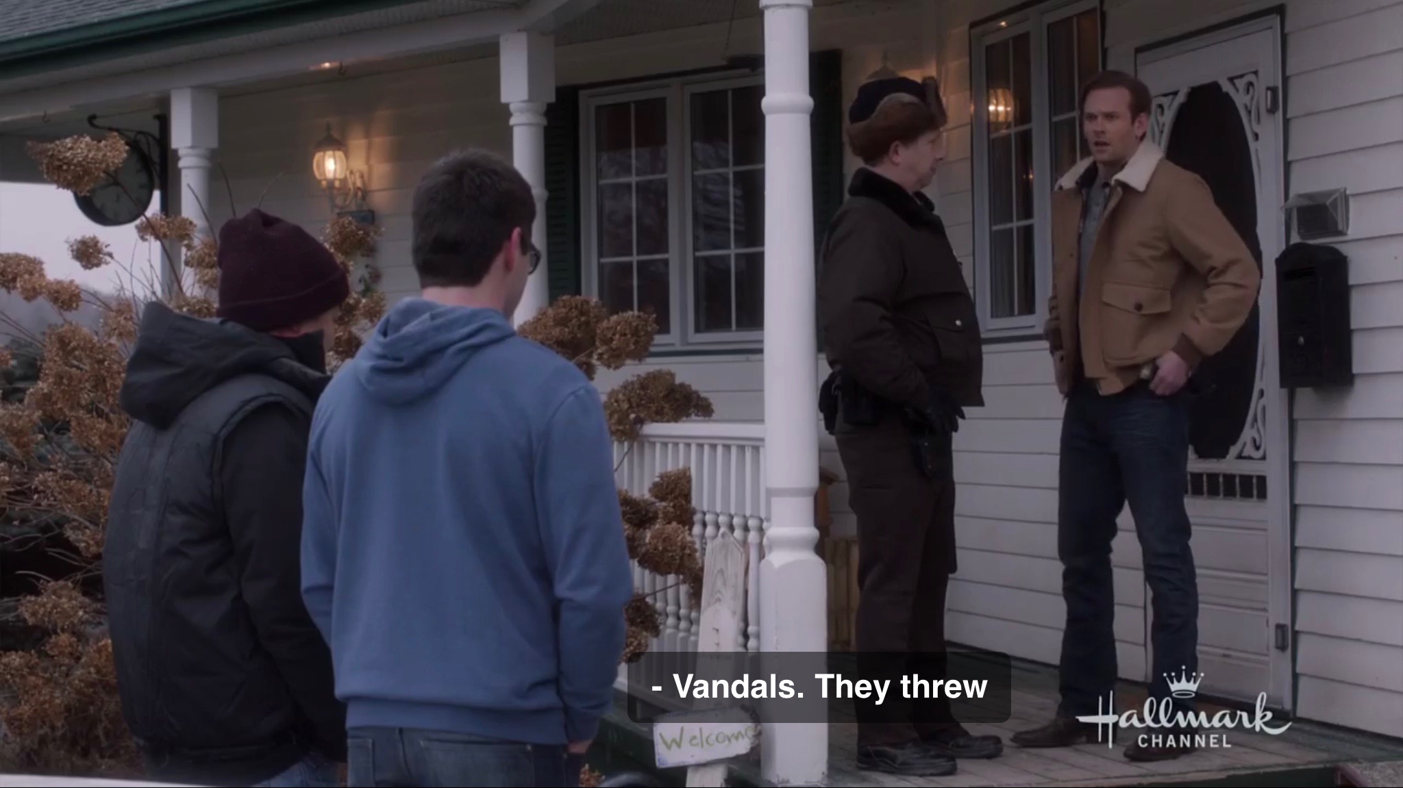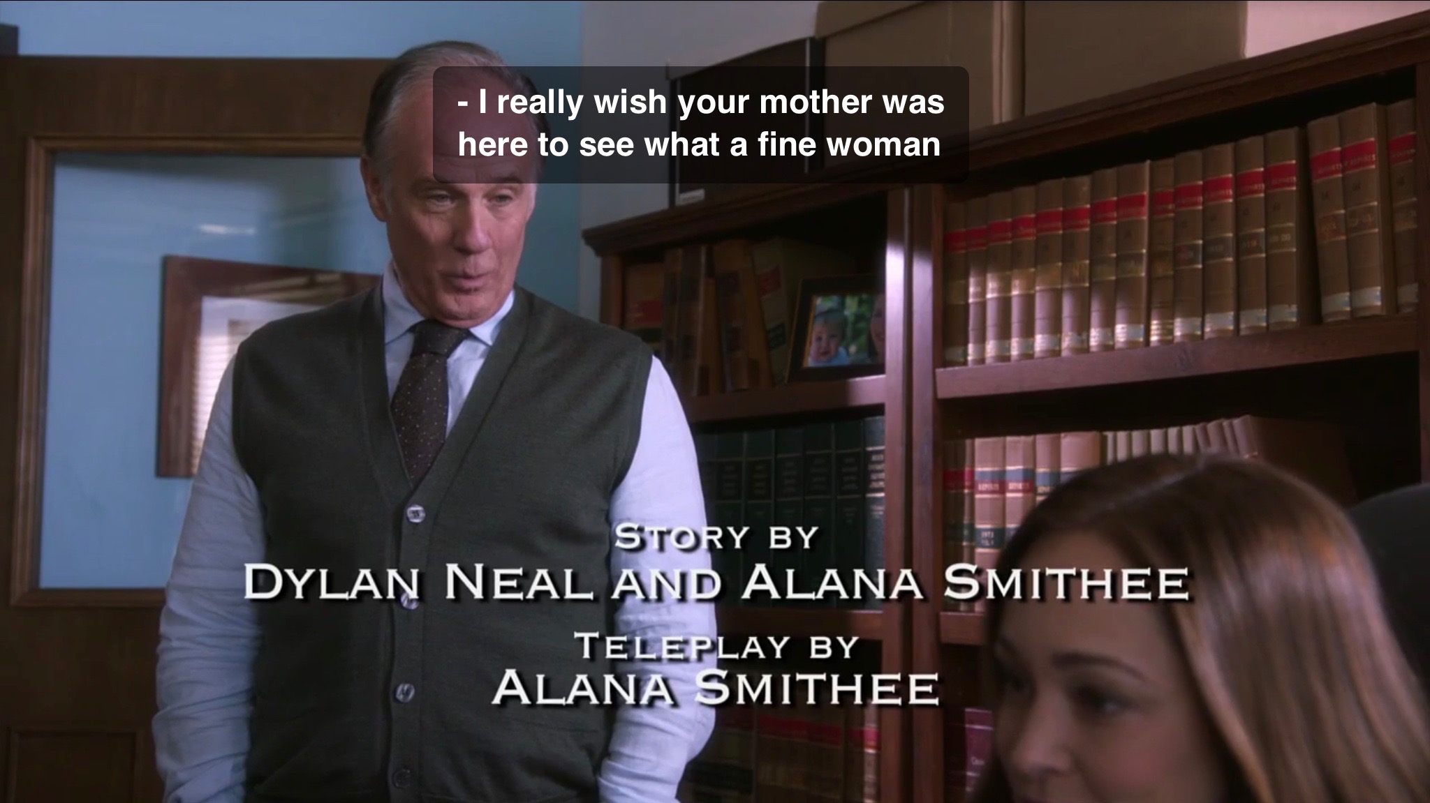 First off, take a look at those credits. Dylan Neal we know from The Gourmet Detective series. However, Alana Smithee is a new one on me and IMDb…sort of. It is a long standing tradition for people working on films, especially directors, to ask to be credited as Alan Smithee because the film was so taken away from them, recut, or basically changed so heavily that they don’t want to be associated with the movie. Alana Smithee sure reads like that is what happened here to the person who wrote the teleplay for this film and co-wrote the story with Dylan Neal. What’s really interesting is that until I changed it last night on IMDb to match the onscreen credits–you can still find the name on other sites–Teena Booth who has written numerous Hallmark movies was credited as one of the writers. She could be this Alana Smithee since I have no reason to believe there is an actual person with that name who has a completely blank profile with this film as their only credit.
