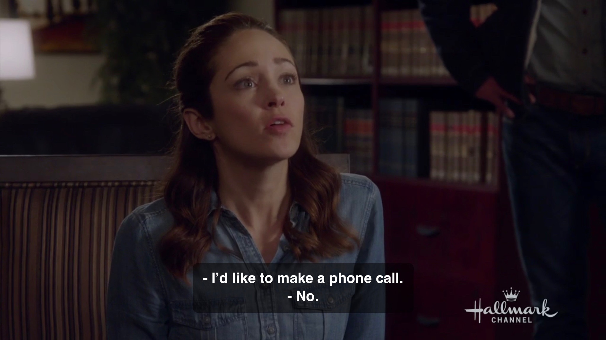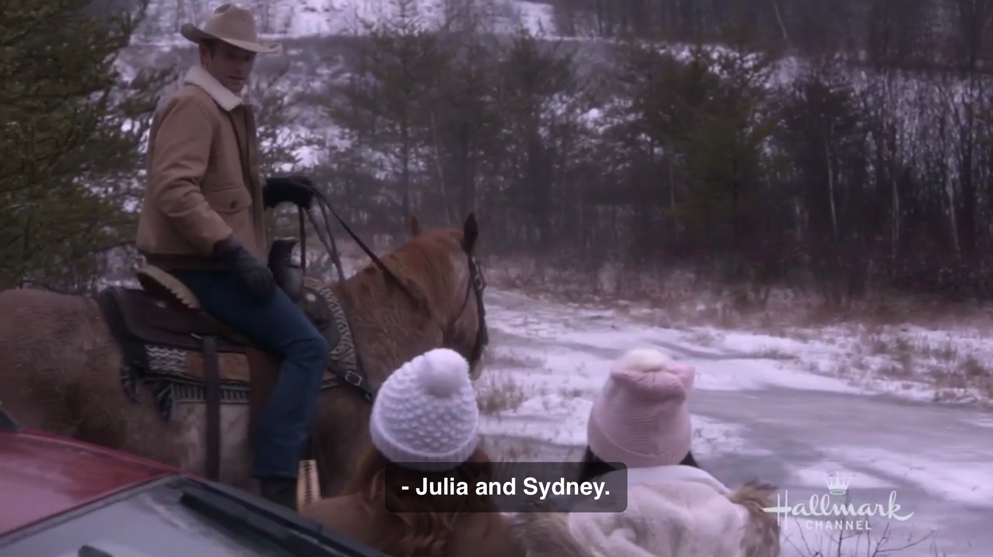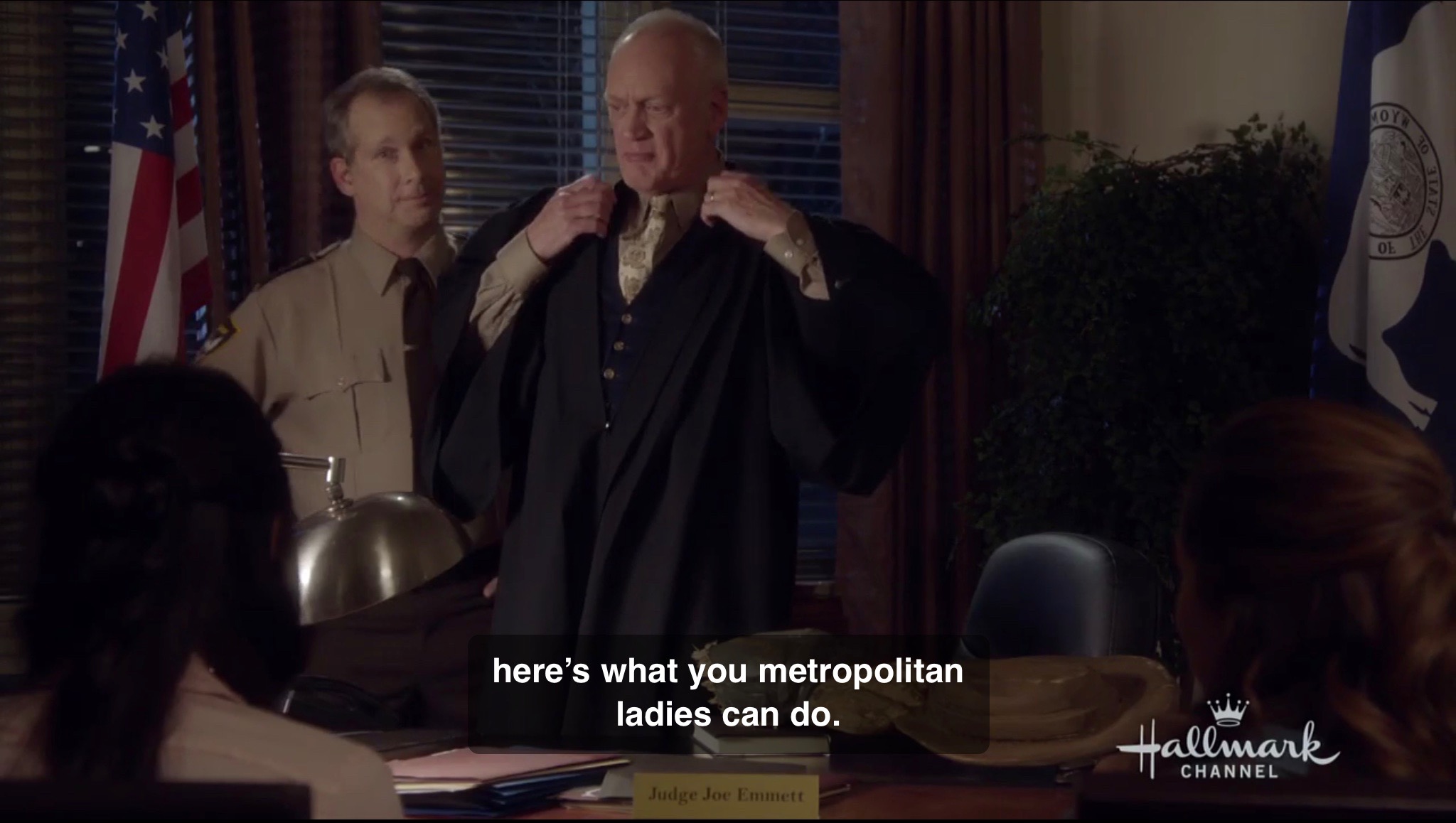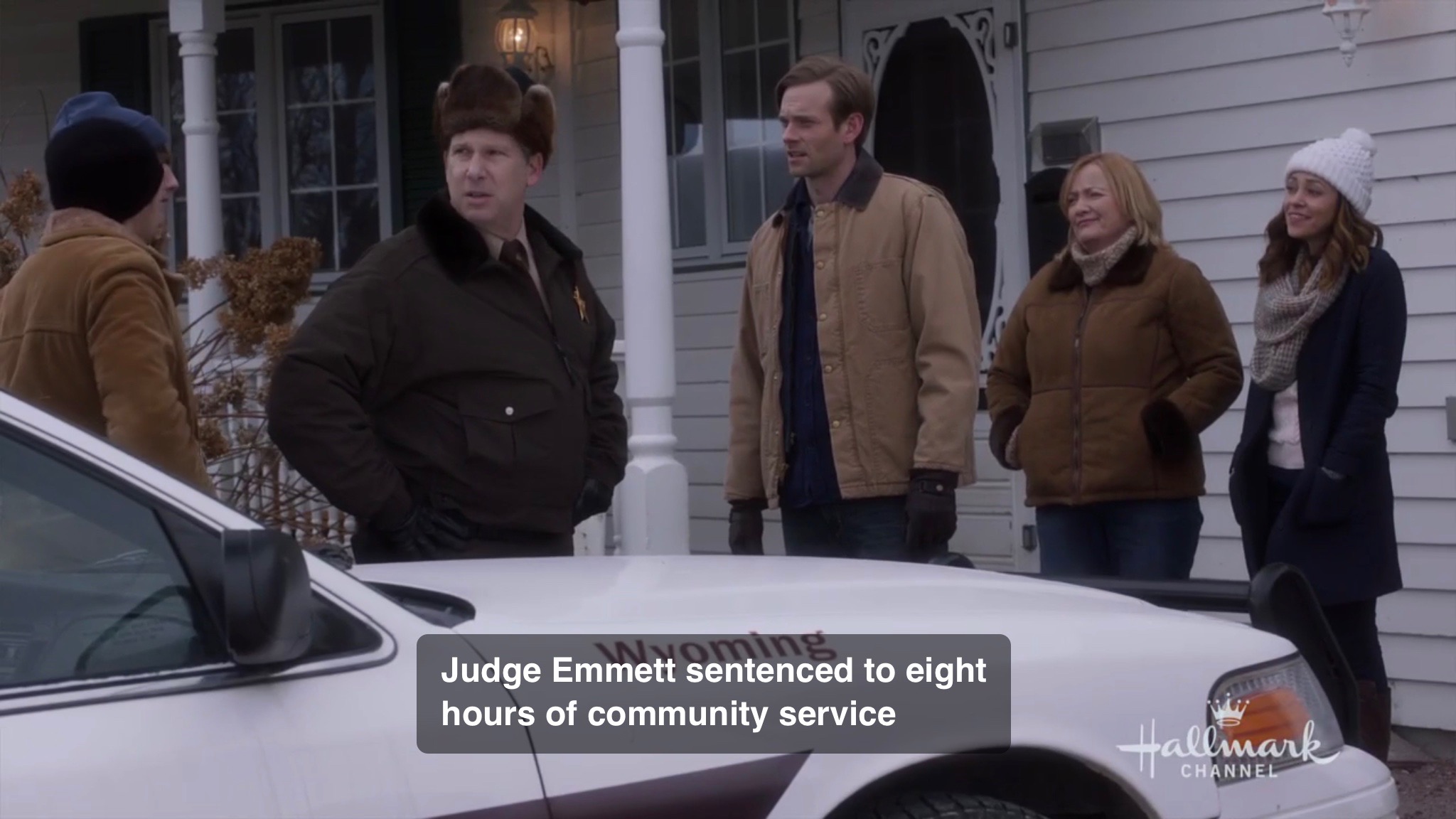 The two ladies are then put up in the cabin and given a heater. Then the next morning comes and someone must have realized they really needed a way to explain away the previous scenes. Julia wakes up to a call on her cellphone. It’s her fiancee. He can’t believe she took a plea bargain on a “bogus charge”. He asks if she called her father who runs a legal firm. She says yes, but that he told her “that in a small town, the judge can basically do anything he likes.” Julia then says, “Technically, we did break the law, even though we didn’t do it on purpose, and we were lucky to get this offer.” Any follow up on that? Nope, just implications that maybe she took this judge’s offer because she didn’t want to marry him. Also, no I’m on my way honey from the father because you should have at least been allowed legal defense, you’re my daughter, and I should come there. None of that. The movie is now setup for the typical woman from the city discovers she prefers country life that Hallmark has done so many times over.