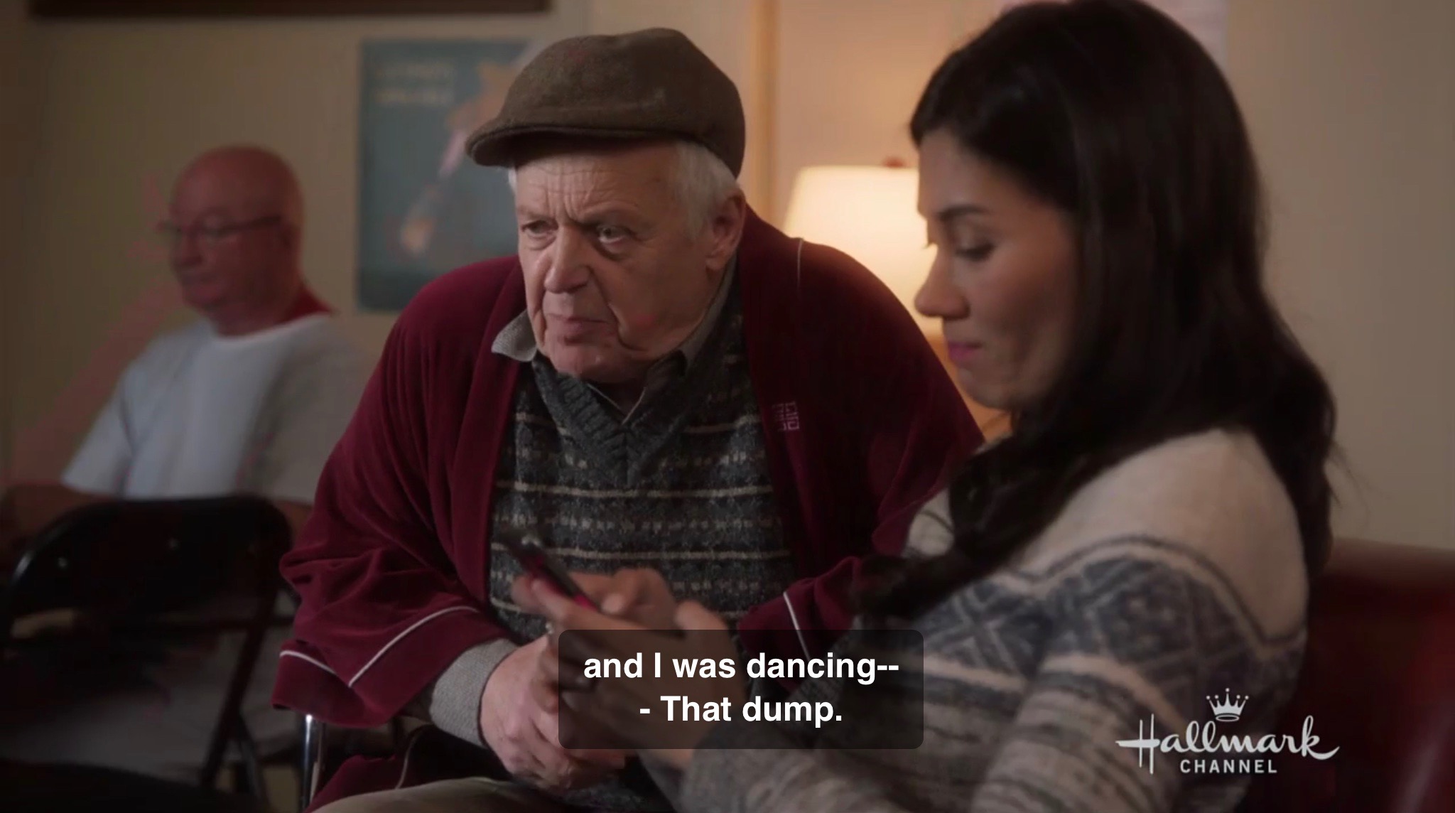 There’s a scene during this that I actually like. Sydney gets assigned to work with a stubborn old guy at a hospital. Well, not stubborn for long. Sydney is checking Twitter instead of talking to him. He says that the last girl “was so chatty, she got on my nerves but right now, I’m starting to miss her.” To her response that she is checking Twitter, he says he knows what Twitter is. He is even interested in what she is doing on there. But it gets better. He asks her exactly how she ended up having to do this for him. As she starts to explain that it was “just a disorderly accident” and that it was at Charlie’s bar he interrupts her and calls the place a dump.
