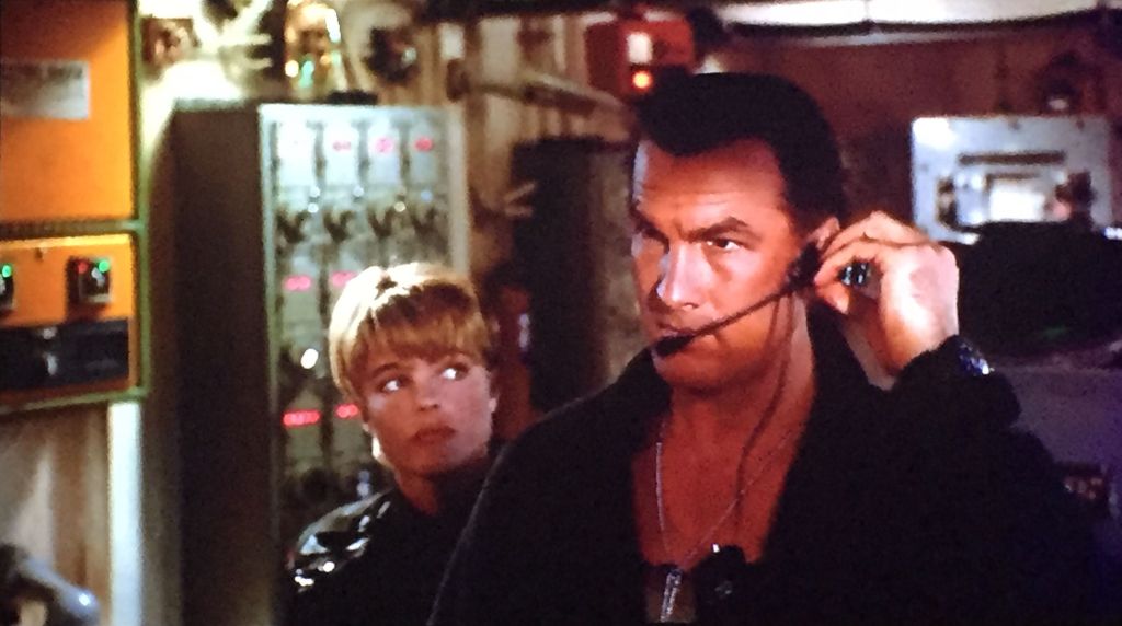 Casey Ryback (Seagal) is a “cook” aboard the USS Missouri, a battleship that is scheduled to be decommissioned. He’s also a former badass Navy SEAL who was demoted after punching out his commanding officer when a mission in Panama had gone wrong. When a group of mercenaries led by ex–CIA operative William Strannix (Tommy Lee Jones) seize control of the ship under the guise of a birthday celebration, they overlook Ryback. In classic John McClane style, Ryback goes on to become a fly in their ointment, a monkey in their wrench, and a big-time pain in their asses! Moving through the narrow corridors of the ship, and with the assistance of Playboy Playmate Jordan Tate (Erika Eleniak), Ryback begins taking out mercenaries one by one. But will he be able to stop Strannix and his partner Krill (Gary Busey) from stealing the ship’s nuclear Tomahawks and preserve the safety and security of the world? I’ll give you one guess!