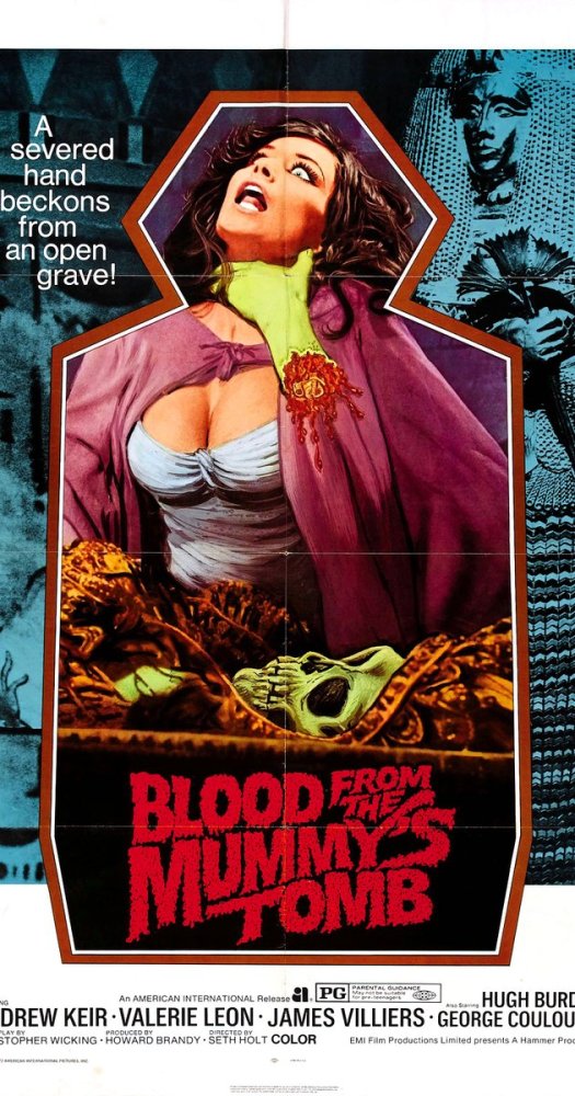 Hammer’s ‘Mummy’ movies never really did it for me, but BLOOD FROM THE MUMMY’S TOMB is a shroud of a different colour. Adapted from Bram Stoker’s novel “The Jewel of the Seven Stars”, the movie suffered some behind the scenes setbacks, which contribute to its choppy nature. The backstage chaos began when original star Peter Cushing’s wife passed away after only a day’s filming. He was replaced by Andrew Keir (QUARTERMASS AND THE PIT). Then before shooting was complete, director Seth Holt (TASTE OF FEAR, THE NANNY) died of a heart attack, and Hammer veteran Michael Carreras had to step in to finish the film. Despite all this, BLOOD FROM THE MUMMY’S TOMB is one of the better latter-day Hammers, picking up steam as it goes along, with a great performance by sexy star Valerie Leon.