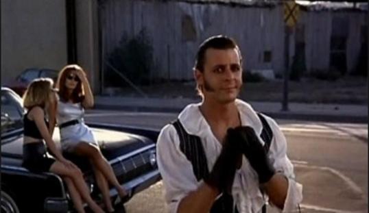 That’s Judd Nelson, going heavy on the sideburns and eyeliner in the role of Gideon.  I am not sure if this movie was filmed before or after the famous “puffy shirt” episode of Seinfeld.