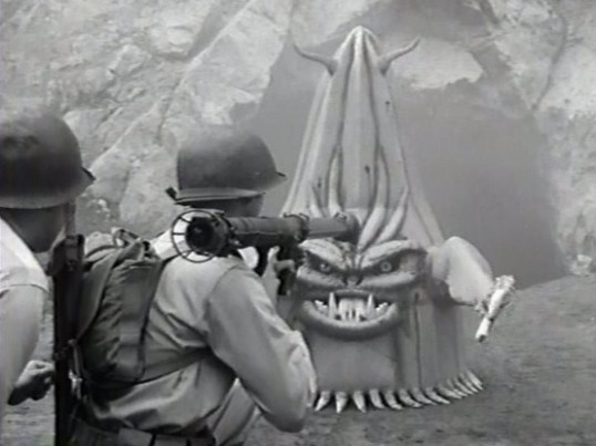 The film also features future spaghetti western star Lee Van Cleef as the human scientist who foolishly helps It conquer the world. Van Cleef’s wife is played by one of the greatest B-movie actresses of all time, Beverly Garland. Hoping to thwart It is Peter Graves who spends the majority of the film riding around on a bicycle. Also keep an eye out for Dick Miller and Jonathan Haze, who both play soldiers here and who would later co-star in tomorrow’s horror on the lens.