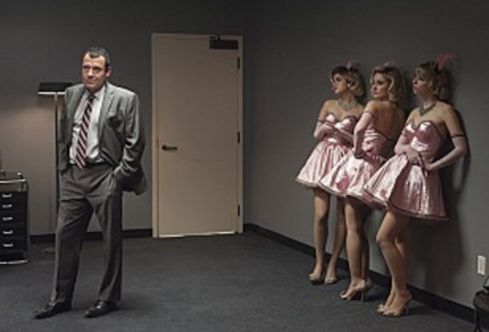 At the Silver Mustang Casino, Rodney Mitchum (Robert Knepper) and Bradley Mitchum (Jim Belushi) demand to know how Cooper/Dougie could possibly have won 30 jackpots.  Rodney’s way of handling it is to beat up the pit boss (David Dastmalchian) while three women in pink stand in the corner of the room and nonchalantly watch.