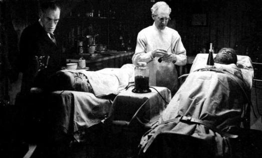 Hulking brute man Moloch, henchman of biochemist Mr. Stendahl (who’s not a doctor, by the way), strangles a morgue attendant and steals the body of the Ape Woman from it’s slab (where we left it in the last film). Inspector Harrigan is called in on the case, and a lab smock found near the abandoned crashed-and-burned meat wagon leads him to Stendahl’s lab, where he encounters pretty assistant Ann and her fiancé Don working (actually, they’re necking…