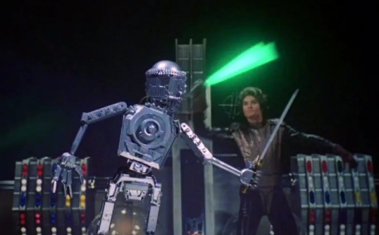 A good deal of the success of Starcrash is due to Caroline Munro, who gives such a committed and likable performance as Stella Starr that it’s hard not to mourn the fact that Cozzi was never able to make any more films about the character. As played by Munro, Stella Starr is a smart, confident, and strong. Stella loves doing what she does and it’s impossible not share her joy when she announces she’s taking the ship into “hyperspace.” Even though Stella spends the majority of the film running around in a leather bikini, Munro brings a definite touch of class to the role. No one is going to push Stella Starr around and certainly, no one is going to destroy the Galaxy on her watch. Thank to Caroline Munro’s fearless performance, Starcrash is one of the most empowering science fictions ever made.