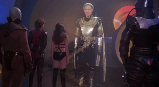 There’s no point in denying that Starcrash would never have been made if not for the success of the first Star Wars. Indeed, the film even begins with an opening crawl and features a shot that is almost a recreation of the first scene in Star Wars. However, director Luigi Cozzi doesn’t limit himself to just mining Star Wars for inspiration. The giant tin robot owes a huge debt to the creations of Ray Harryhausen. The judge that sentences Stella and Akton to prison is the same talking head that appeared in Invaders From Mars. A scene in which Stella explores an abandoned spaceship owes more than a little to 2001: A Space Odyssey. Even Akton, with his telepathic powers, seems like he could have stepped out of an episode of Star Trek.