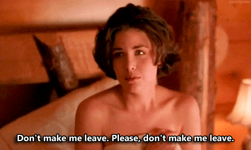The light comes on and … there’s a naked Audrey in his bed! “Please, don’t make me leave,” she says.