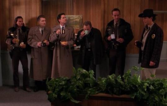 Andy leads the Doppelganger into the station, where they meet Lucy (Kimmy Robertson) and Sheriff Truman (Robert Forster). When the Doppelganger turns down a cup of coffee, everyone knows something strange is happening. Then, Andy starts to have visions of him and Lucy standing in the lobby, looking at something.