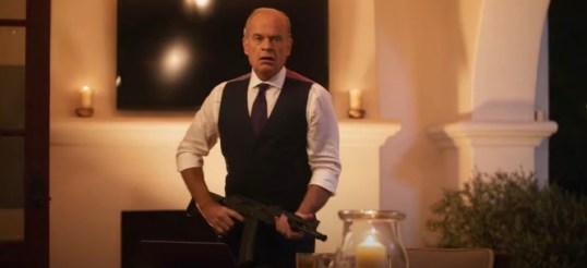 Meanwhile, wannabe mob boss Frank (Tom Sizemore) is upset because another mob boss, Aldo (Kelsey Grammer), doesn’t treat him with any respect.  Frank sends two of his hitmen, Thumper (David O’Hara) and Dominic (Omari Hardwick), to kill a man who owes him money and to also shoot the man’s dog.  Thumper has been reading Teddy Raymond’s book and doesn’t want to shoot the dog.  Dominic realizes that his heart isn’t into the mob life so, taking the book’s message to heart, he calls Frank and says, “My heart’s not in it.”