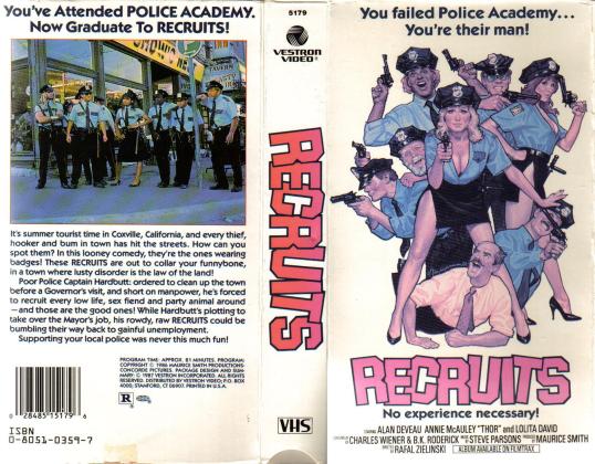 As far as brainless rip-offs of movies that weren’t particularly good to begin with go, Recruits isn’t that bad. The humor is even more juvenile here than it was in Police Academy and trying to apply too much logic to the plot will make your brain hurt but it’s a breezy 90 minutes and it’s got a game cast, a few of whom went on to better things. (Lolita Davidovich, for instance, is the recruit who ends up naked in a limo that turns out to belong to the governor.) Jon Mikl Thor made his feature film debut as a recruit named Thunderhead and he gets to battle a bunch of outlaw bikers while one his songs plays in the background. It’s a pretty cool scene. If you’re nostalgic for these types of unapologetically dumb comedies, Recruits will satisfy that nostalgia.