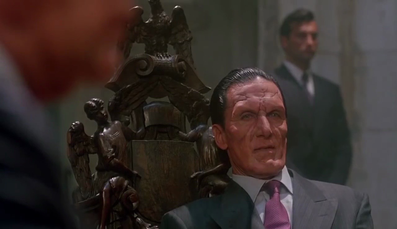 We then cut to that place from earlier. There’s no title card, but thankfully it does look like the one that said the White House. Ronny Cox talks to a General Fleming who doesn’t like these new environmental guidelines President Ronny Cox has written up. He also isn’t happy that his leg lamp he had in A Christmas Story (1983) was broken because he’s played by Darren McGavin. Now we go to Fortress Lorenzo, Italy.