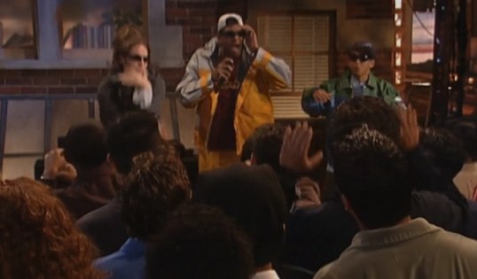 Meanwhile, it turns out that Chris and Jamal do still have their radio show but, with Jamal devoting all of his time to baseball, L-Train takes over as Chris’s co-host. While the whole radio station thing has never made much sense to me, I do have to give credit where credit is due. In the role of L-Train, Steven Daniel was often this show’s secret weapon and he shows it here, managing to get laughs from even the lamest of jokes. L-Train often got the worst lines but Daniel always delivered them with such sincerity that it was impossible not to smile.