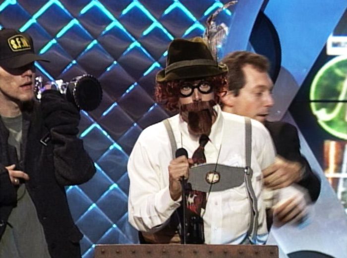 This was actually the first time in the history of the VMAs that someone rushed the stage to protest a win. Kanye West, of course, later made this a famous move but Adam Yauch did it first. (My favorite thing about the picture above is the look on Michael Stipe’s face.)