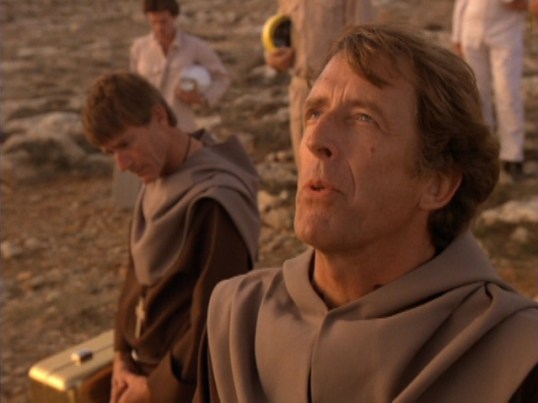 The second expedition is led by Captain Arthur Black (Nicholas Hammond, best-know for playing Spider-Man in the late 70s TV series). When they land on Mars, they discover that the formerly Red Planet now looks like Black’s childhood home of Green Bluff, Illinois. All of their relatives are waiting for them! Falling into the belief that they’ve returned to the past, the astronauts are killed by their “families” that night. It turns out that the Martians were using Black’s memories to set a trap for them. As the Martian who disguises himself as Black’s brother explains it, they’ve seen, in the minds of the astronauts, what the humans are doing to their own planet and they can’t allow that to happen to Mars. “Forgive us,” the Martians says, “we were once an honorable race.” In one of the best scenes in both the book and the miniseries, the Martians still have an Earth-style funeral for the men that they’ve killed because they too got sucked into the world that they created and came to care about the men they felt they had to kill.